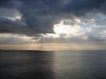 Keywords: sunbeams sun on water sky clouds ocean sunlight
