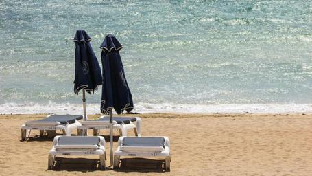 Keywords: sunbed umbrella sea beach summer vacation holiday tourism leisure relax relaxation cyprus
