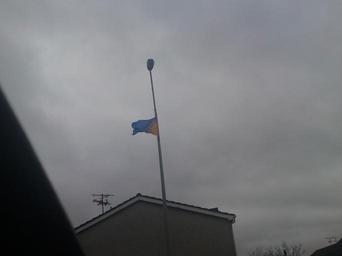 Keywords: Sunburst.JPG en A Sunburst Flag flying on the Cushendall Road Ballymena County Antrim Own DColt 2009-05-16 Ballymena May 2009 in Northern Ireland Flags in County Antrim Irish republicanism