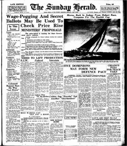 | Keywords: Sunday herald 23 January 1949.jpg Coverpage of a historic newspaper from New South Wales Australia http //trove nla gov au/ndp/del/titles state New 20South 20Wales before 1955 PD-Australia Newspapers of New South Wales SLNSW media uploaded by User 99of9 |