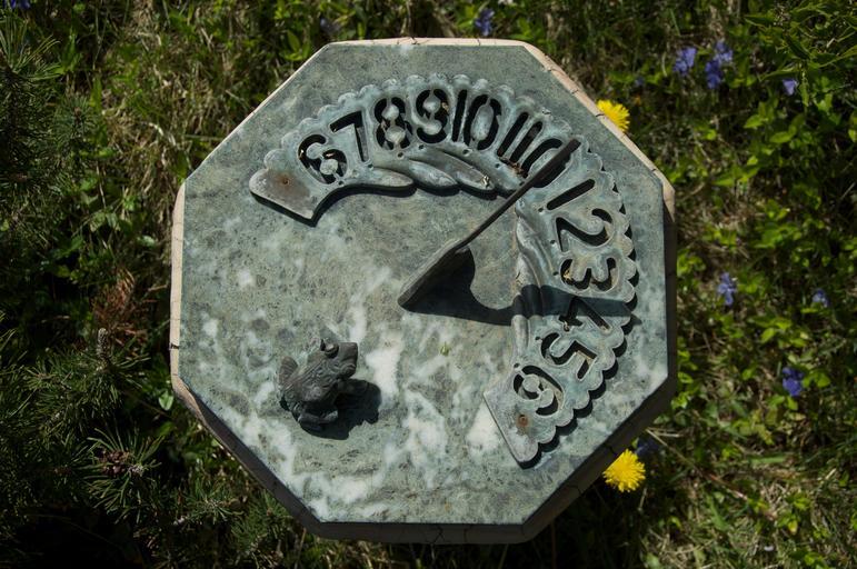 Keywords: sundial lawn landscape summer stone sun grass decorative sunny astrological daytime hours measurement shadow timekeeping timepiece