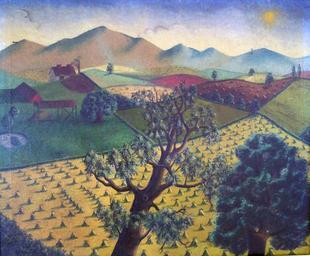 Keywords: SundownFromLythHill.JPG en Landscape - Sundown From Lyth Hill Oil on canvas 24 x 20 Inscribes on rear Sundown From Lyth Hill Victory Day August 1945 Own David Kentish Citizenarts 1945 1945 landscape paintings