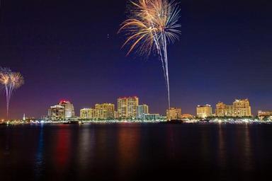 Keywords: sunfest fireworks water city night celebration light cityscape travel sky festival party flame bay