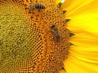 Keywords: sunflower the bees insect nature bee flora
