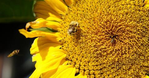 Keywords: sunflower bees insects summer seeds blooming sunlight