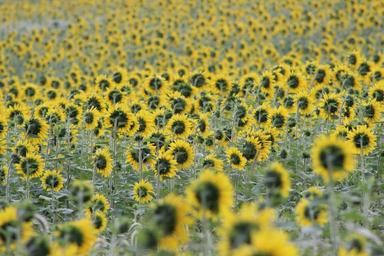 Keywords: sunflower blooming flower yellow field beautiful