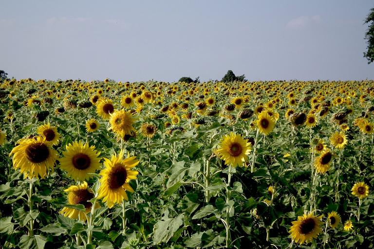 Keywords: sunflower field yellow flower bloom blossom petals landscape rural outdoors plant growing bright natural blooming floral countryside vibrant farm agriculture