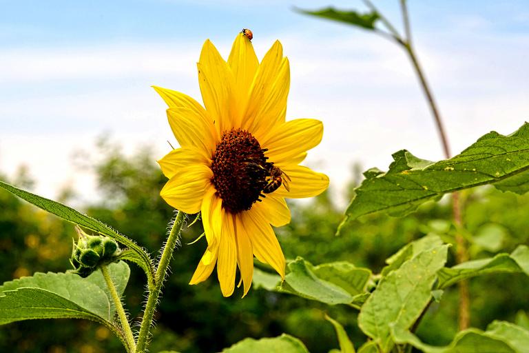 Keywords: sunflower green beetle nature flower summer natural sun sunny bright garden yellow plant outdoor spring ladybug bug sky