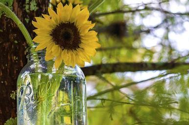 Keywords: sunflower mason jar ball jar outdoors nature tree flower bouquet vintage country floral bloom