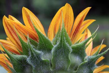 Keywords: sunflower petals head back backside green yellow copy space spring summer side