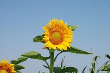 Keywords: sunflower summer flowers yellow flower blue sky sun in bloom yellow colorful coloured nature field sunflowers