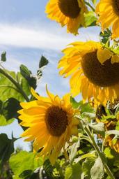 Keywords: sunflower summer sky plant closeup bright flower nature dacha vegetable garden yellow greens farming agriculture outdoors elitexpo green
