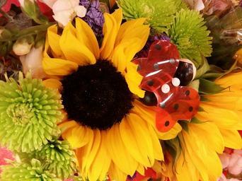 Keywords: sunflower yellow nature flower plant season growth garden floral bunch decorative ladybug blossom summer