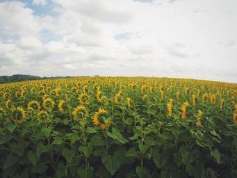 Keywords: sunflowers field green yellow nature outdoors sky clouds garden