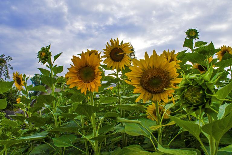Keywords: sunflowers garden flowers summer plant blossom blooming flora bloom