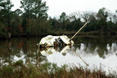 Keywords: sunken boat water lake
