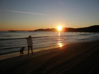 Keywords: sunrise baltic sea sea walk dog beach coast water rügen