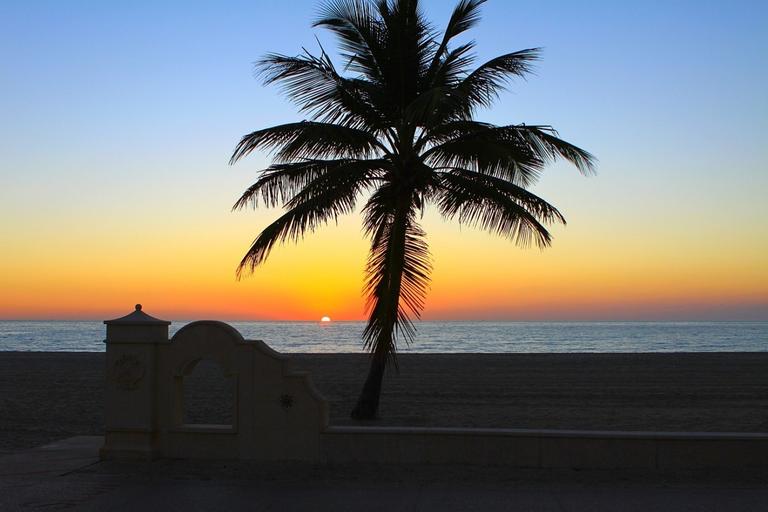 Keywords: sunrise dawn daybreak palm tree sky sand beach hollywood florida