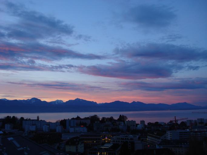 Keywords: sunrise dawn sky mountains lake geneva lausanne switzerland nature rising sun