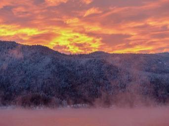 Keywords: sunrise early morning water mountain winter magic mountain top landscape scene nature snow snow landscape winter mood scenery cold peak winter dream canim lake british columbia canada cariboo glowing sky