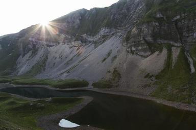 Keywords: sunrise eisee red horn bergsee morgenstimmung lighting mountains river lake panorama wild sunlight