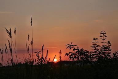 Keywords: sunrise grass mood sky nature morgenstimmung morning atmosphere grasses clouds back light romantic orange yellow idyll