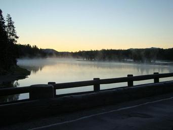 Keywords: sunrise mist lake nature fog morning light sky sunlight forest scenic outdoor foggy environment natural view park