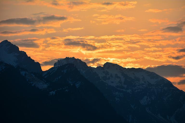 Keywords: sunrise mountains mountain peaks sky clouds lighting weather mood nature landscape