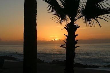 Keywords: sunrise palm tropical cabo mexico beach ocean sea coast water dawn