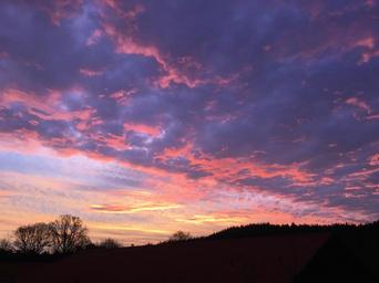 Keywords: sunrise sky clouds landscape trees winter picnic denmark