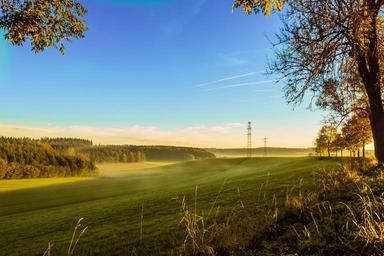 Keywords: sunrise sky morning clouds background fog herbstnebel morning hour strommast power line power poles line upper lines landscape power supply pylon high voltage reinforce power lines