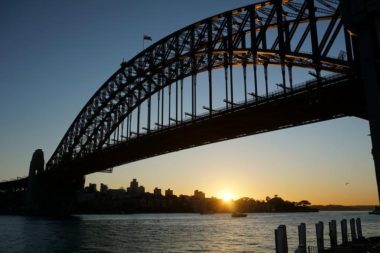 Keywords: sunrise sydney harbour bridge australia bridge cityscape skyline nsw dawn