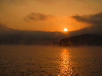 Keywords: sunrise two water head republic of korea sky solar scenery lake sunrise photo landscape water mist