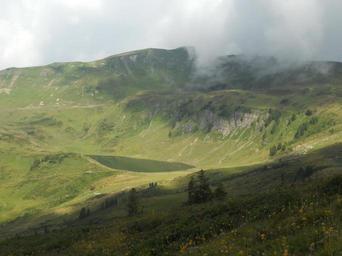 Keywords: Sünser Spitze.jpg de Sünser Spitze mit Sünsersee im Vordergrund own Bertschdaniel Samstag 11 August 2012 nein Blick vom Portla Fürkele aus Im Vordergrund der Sünsersee Cc-zero Sünser Spitze Sünser See