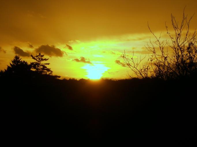 Keywords: sunset afterglow evening sky romantic clouds nature sky sun rest abendstimmung tree bush silhouette still atmospheric mood