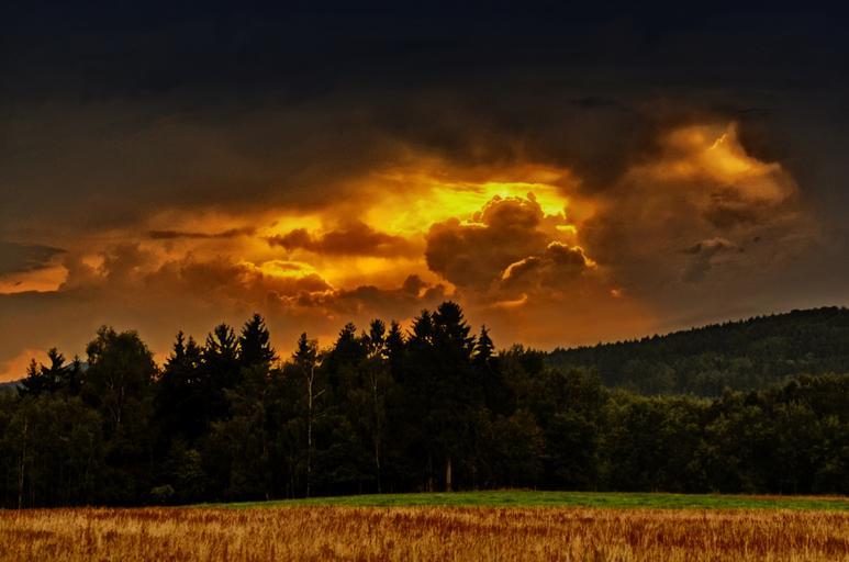 Keywords: sunset afterglow sky evening sky clouds abendstimmung nature atmosphere evening orange landscape dusk romantic weather mood trees
