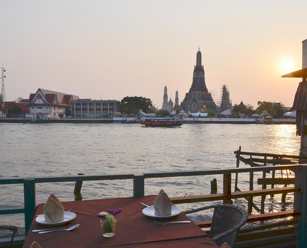 Keywords: sunset bangkok temple of dawn dinner romantic
