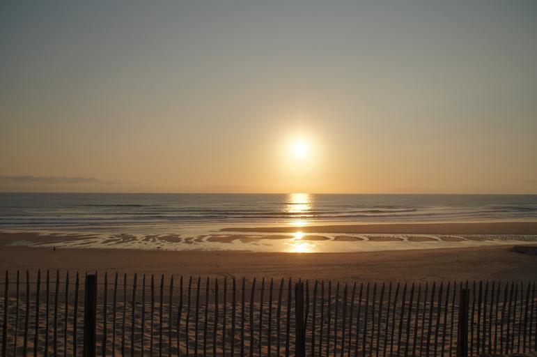 Keywords: sunset beach biscarrosse ocean atlantic dune sea relax rock coast surf wave blue rocky coast landscape sky holiday turquoise stones gradually france web travel seagull sand beach footprints