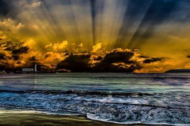 Keywords: sunset beach sea scarborough england waves sun water destination travel serenity sunrise holiday dusk tide relax dawn sandy nature landscapes ocean