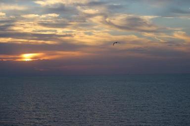 Keywords: sunset bird ocean clouds sky colorful birds sun beautiful orange flying scenery water landscapes
