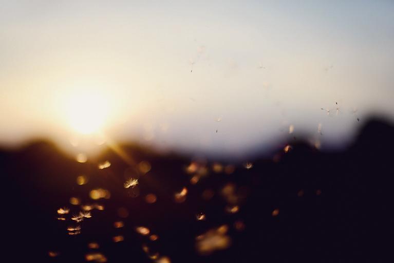 Keywords: sunset bokeh dandelion summer direct light