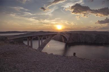 Keywords: sunset bridge architecture landscape lake water sky clouds