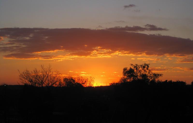 Keywords: sunset bright orange sun cloud edging luminous glowing bush sky
