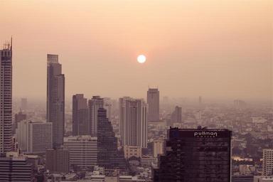Keywords: sunset city buildings towers architecture hotel sky urban