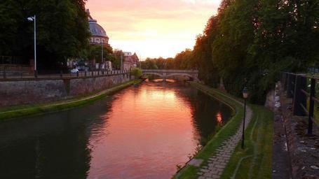 Keywords: sunset city town bridge buildings beautiful dusk evening colorful reflections architecture