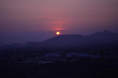 Keywords: sunset clouds beach mountains sky sun orange glow horizon