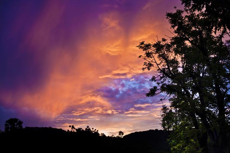 Keywords: sunset clouds evening purple orange sky night forest