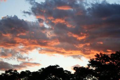 Keywords: sunset clouds soft orange silhouette contrast glowing sky trees