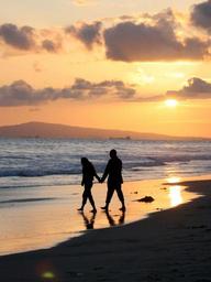 Keywords: sunset couple stroll california pacific coast huntington beach