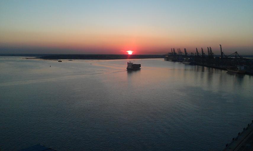 Keywords: sunset docks water sky nature landscape boat ship silhouette view outdoor port felixstowe